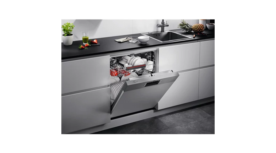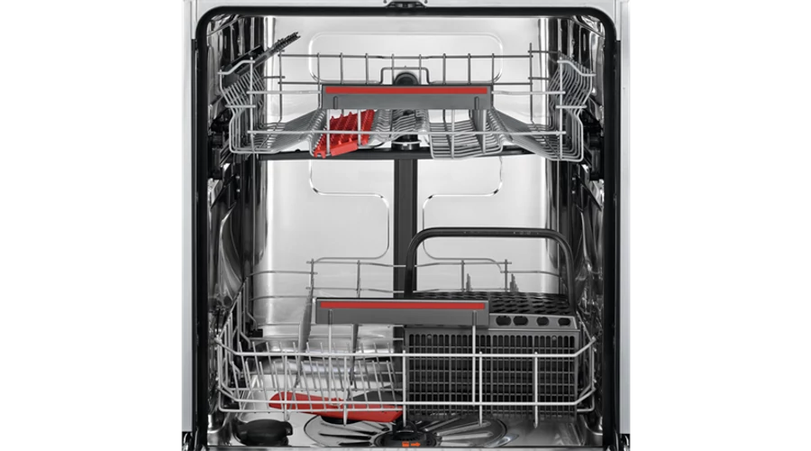 - Alsó kosár a következő opciókkal: 2 lehajtható tányértartó, Műanyag fogantyú
