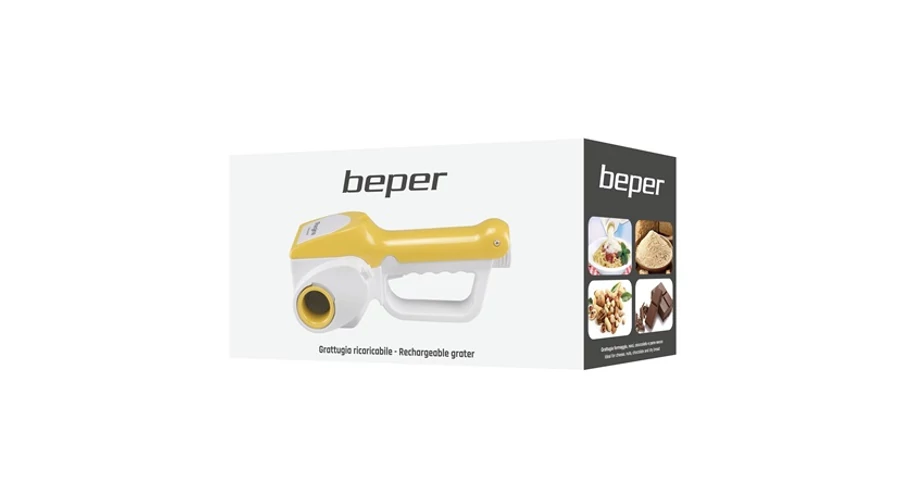 Vezeték nélküli reszelő ergonomikus fogantyúval. Teljesen szétszedhető a gyors és könnyű tisztítás érdekében. Egyszerűen és biztonságosan használható, 2 cserélhető acél reszelővel; finom reszelő érett sajtokhoz, mint például a Parmesan és egy durvább reszelő puhább sajtok tökéletes reszeléséhez. Működési idő: 40 perc. Tölthető Ni-Mh akkumulátor.