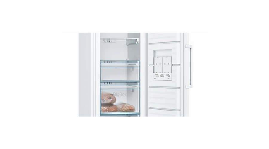 Elektronikus hőmérséklet-szabályozású NoFrost fagyasztószekrény: a célhőmérséklet pontosan és egyszerűen beállítható.