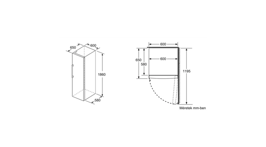 Készülékméret (magasság x szélesség x mélység): 176 x 60 x 65 cm