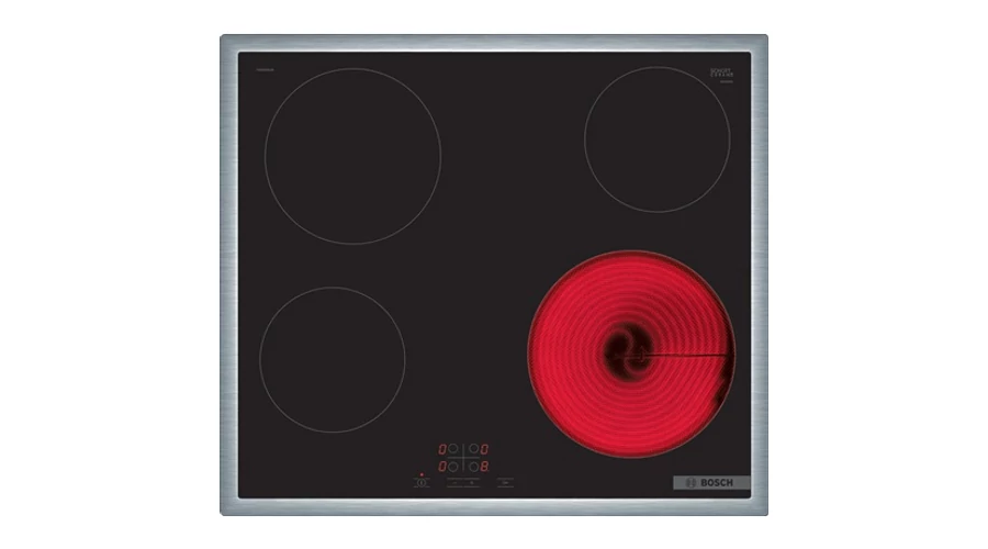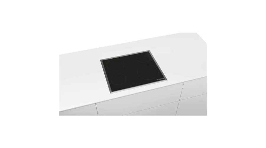 Keretes kivitel: Elegáns fémkeret a főzőlap szélein, ideális már meglévő helyre illesztésnél.
