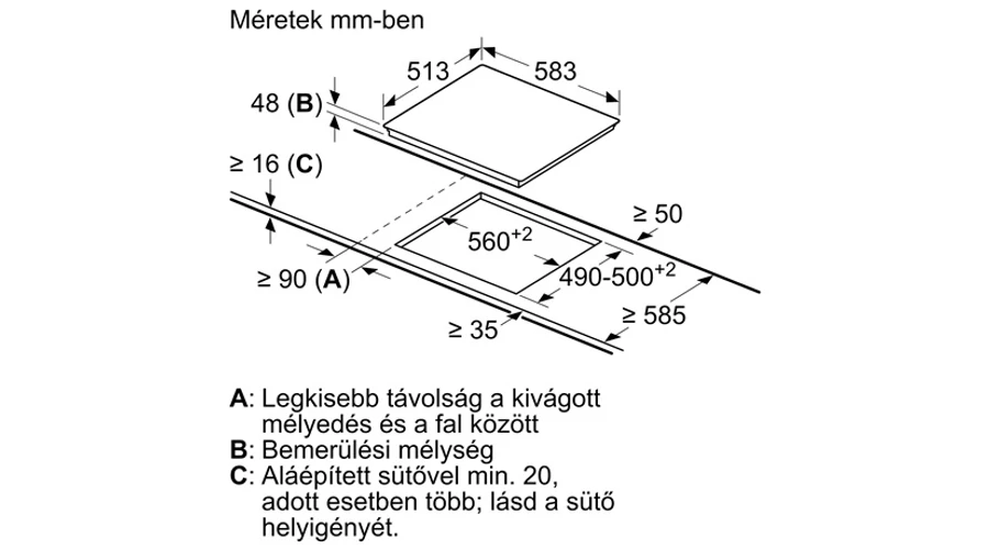 - Beépítéshez szükséges minimális szélesség: 560 mm
