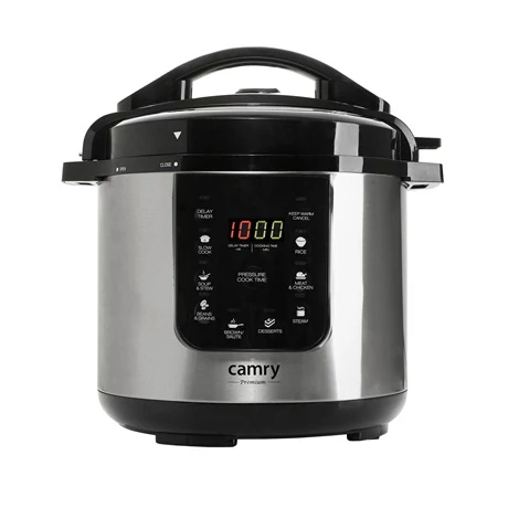 Teljesítmény 1500W-Kapacitás 6L-melegen tartó , "lassu főzés" és kukta funkció-Időzítő-Késleltetett indítás- 8 különböző főzési program- Kivehető rozsdamentes acél tál- Kiegészítők : kanál, mérő pohár, kondenzációs fedő