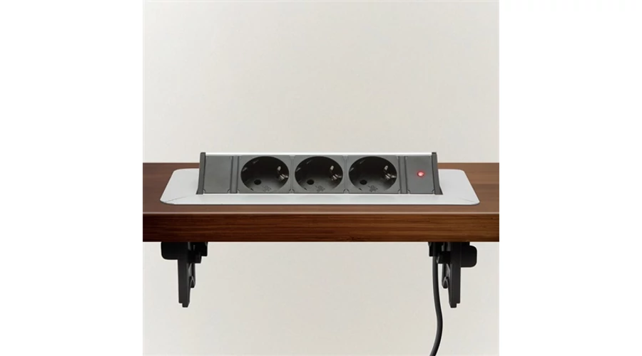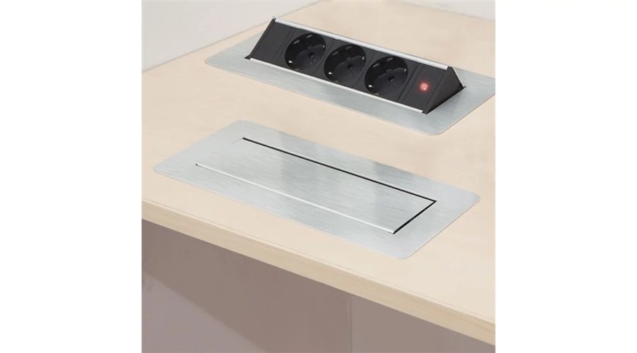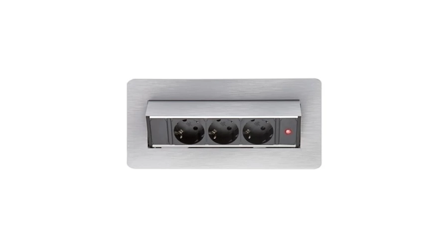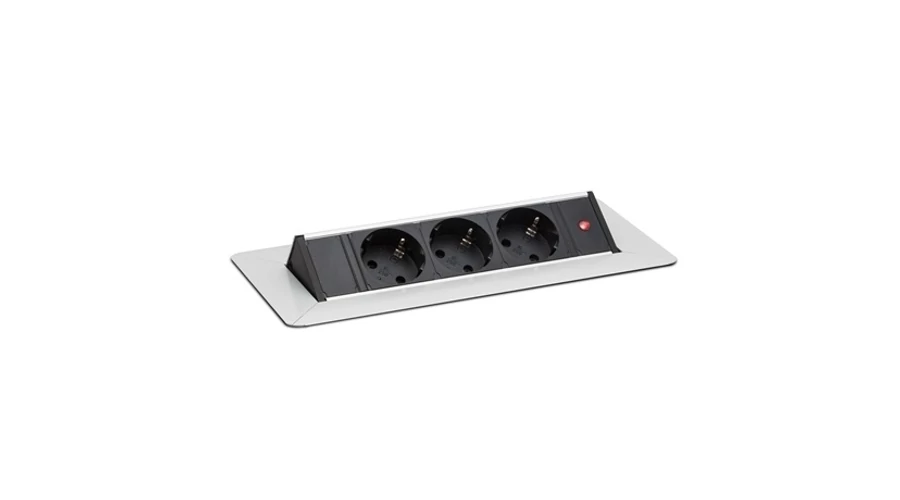 Süllyeszthető elosztó irodai és otthoni felhasználásra, szálcsiszolt felülettel, 3 db gyermekvédelemmel ellátott aljzattal. Asztala, bútora legyen mindig elegáns és rendezett, mégis funkcionális. A rejtett elosztó kiváló megoldás lehet ha már például kész konyhával rendelkezik, de nincs elegendő konnektor a kívánt helyen. Ilyenkor falvésés és villamos hálózat bővítés nélkül, remek alternatíva lehet egy rejtett elosztó. Egy mozdulat és máris rendelkezésre áll 3 szabad konnektor. Ideális lehet olyan elektromos eszközökhöz, amit nem folyamatosan használunk, kenyérpirító, vízforraló... Ha használaton kívül vannak, az "flip-up" elosztó egy mozdulattal elrejthető, ezzel is megkönnyítve például a takarítást, valamint rendezett, letisztult külsőt ad a helységnek.