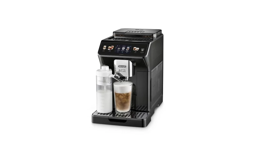 A kifinomult, fekete színűre festett előlap mögött az új De'Longhi Eletta Explore automata kávéfőző több mint 50 forró, hideg és cold brew italt kínáló kincstára rejlik.