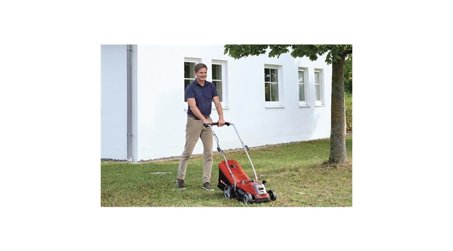 A GE-CM 36/33 Li akkumulátoros fűnyíró egy kiváló minőségű, megbízható, és kimagasló teljesítményt biztosító vezeték nélküli készülék, amelyet kisebb füves területek ápolására terveztek. Az Einhell Power X-Change akkumulátor rendszere lehetővé teszi, hogy a fűnyíróval huzamosabb ideig dolgozzon: üzemeltesse a készüléket két darab nagy teljesítményű 18 V, 2,5 Ah kapacitású akkumulátorral, és felejtse el a kábelekkel járó vesződséget! A vágási magasságot az adott terület tulajdonságaihoz igazítva, egyszerűen beállíthatja az ötfokozatú magasságállítás segítségével. A GE-CM 36/33 Li terméket gyorsrögzítő karral ellátott összecsukható fogantyúval szállítjuk, melynek segítségével három különböző munkamagasságot állíthat be. Minden egyes akkumulátoron található egy három darab LED-ből álló töltöttségi szint jelző, amelyről bármikor leolvashatja az akkumulátorok aktuális töltöttségi szintjét. Az akkumulátorokat felhasználhatja a Power X-Change termékcsaládhoz tartozó számos más készülékhez is. A fűnyíróhoz két darab töltőkészüléket mellékelünk. A nagy futófelületű kerekek óvják a pázsitot. A nagyméretű fűgyűjtő kosáron lévő telítettségjelzőt ellenőrizve azonnal láthatja, ha ki kell üríteni a kosarat. A hosszú élettartam biztosítása érdekében a készülékház kiváló minőségű, ütésálló műanyagból készült. A készüléken található praktikus fogantyú segítségével egyszerű a szállítás. A GE-CM 36/33 Li fűnyírót max. 250 m2 nagyságú füves területek ápolására tervezték.