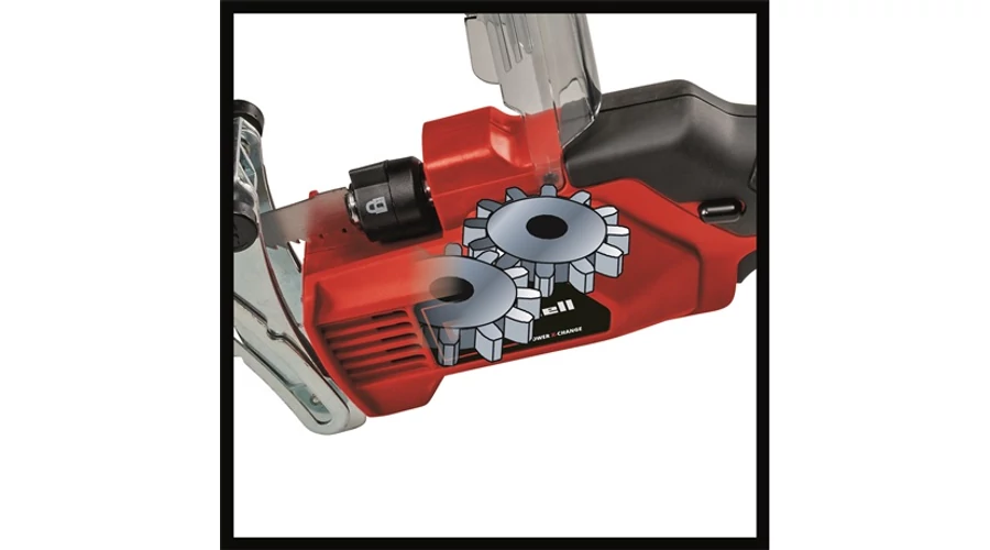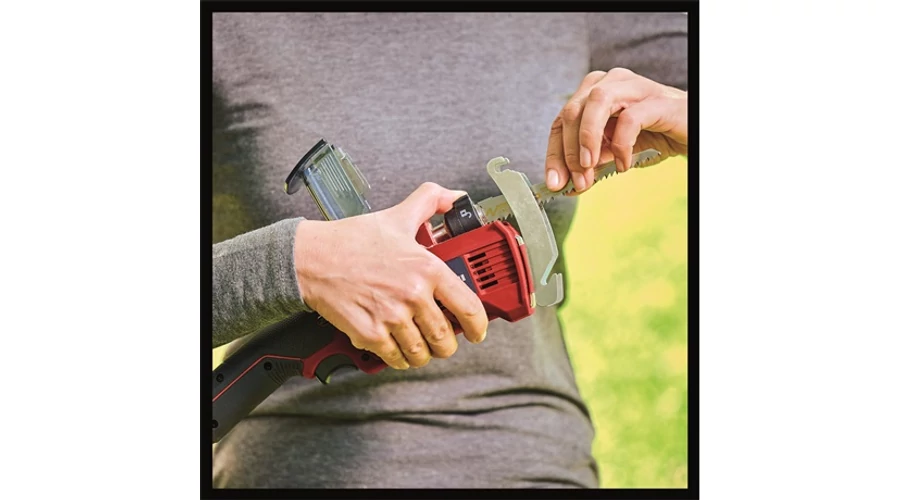 Az Einhell GE-GS 18/150 Li-Solo akkumulátoros ágvágó fűrész segítségével pillanatok alatt lefűrészelheti a fák és bokrok ágait. A fűrész a nagy teljesítményű Power X-Change termékcsaládba tartozik, melynek tagjai – beleértve az összes akkut, készüléket és töltőt – kombinálhatók egymással. A fűrészt rezgéscsökkentett akkutartóval szerelték fel, amely csökkenti a rezgés mértékét; az akkumulátor így még kisebb terhelésnek van kitéve. Az akkumeghajtásnak és az erős fém hajtóműnek, valamint a 20 mm-es löketmagasságnak és a percenkénti 1500 – 2800 löketszámnak köszönhetően kengyel nélkül még a max. 10 cm vastagságú ágakat is könnyedén elvághatja a fűrész segítségével. A fűrészt egy szerszám nélkül rögzíthető kengyellel szerelték fel, amely az ágra helyezve maximális stabilitást biztosít, és megakadályozza, hogy a készülék elcsúszhasson. Így biztonságosan és egy kézzel is használhatja a fűrészt. Ha a kengyelt felhelyezi, akkor max. 8 cm vastagságú ágakat fűrészelhet el, vagy akár még a magasabban lévő ágakat is lejjebb húzhatja vele. A vékony és ergonomikus kialakítású, mindössze 1,8 kg tömegű készüléket Softgrip borítású markolattal szerelték fel, így kezelése még huzamosabb ideig történő használat esetén sem megterhelő. Az övcsíptetőt használva könnyedén és biztonságosan az oldalára rögzítheti a fűrészt, amikor épp nem dolgozik vele. A maximális biztonságot a megemelt védőgallér, a fűrészlapbefogó védőburkolata, valamint a véletlenszerű beindítást megakadályozó kétkezes kapcsoló garantálják. Az ágvágó fűrészt U-befogású fűrészlapbefogóval tervezték, melynek köszönhetően a fűrészlapot kényelmesen szerszámok nélkül cserélheti ki. A gyári csomagolásban két darab kiváló minőségű „Made in Switzerland” KWB fűrészlap található. Az akku és a töltő nincsenek benne a gyári csomagolásban; ezeket külön vásárolhatja meg.