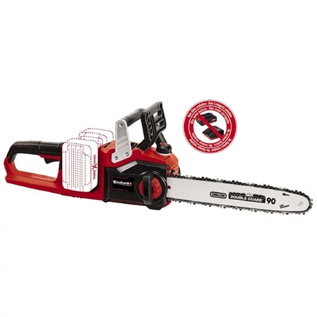 Az Einhell GE-LC 36/35 Li-Solo akkumulátoros láncfűrésze egészen biztosan leveszi a lábáról, hiszen egy rugalmas, erős és könnyen kezelhető segítőtársat ismer majd meg benne. A Power X-Change termékcsalád tagjaként a láncfűrész Einhell Brushless technológiával készült szénkefe nélküli elektromotorját két nagy teljesítményű 18 V akkumulátorról üzemeltetheti. Mivel a láncfűrészt nem kell közvetlenül az elektromos hálózatba csatlakoztatnia, ezért bárhol, bármikor használhatja. A 350 mm hosszúságú OREGON vágókarddal és fűrészlánccal felszerelt akkumulátoros láncfűrész 15 m/s vágási sebességéget garantál, melynek köszönhetően még a vastagabb fatörzsek elfűrészelése sem jelenthet neki akadályt. Sem a lánc cseréjéhez, sem a feszesség beállításához nem lesz szüksége szerszámra. A készüléket fémből készült robosztus körmös ütközővel szállítjuk. A maximális biztonságról a visszacsapódás-védelem, a láncfék és a láncfogó csapszegek gondoskodnak. A Softgrip felületű ergonomikus markolat még a hosszabb munkákat is egyszerűbbé, a makacs, nehezen elvágható anyagok fűrészelését pedig könnyebbé teszi. A fűrész használat közben automatikusan keni a láncot. Az olajat a nagyméretű olajbetöltő nyíláson keresztül öntheti a 120 ml űrtartalmú olajtartályba. A készüléket akkumulátor és töltőkészülék nélkül szállítjuk; ezeket külön - például praktikus PXC kezdőcsomag formájában - vásárolhatja meg.