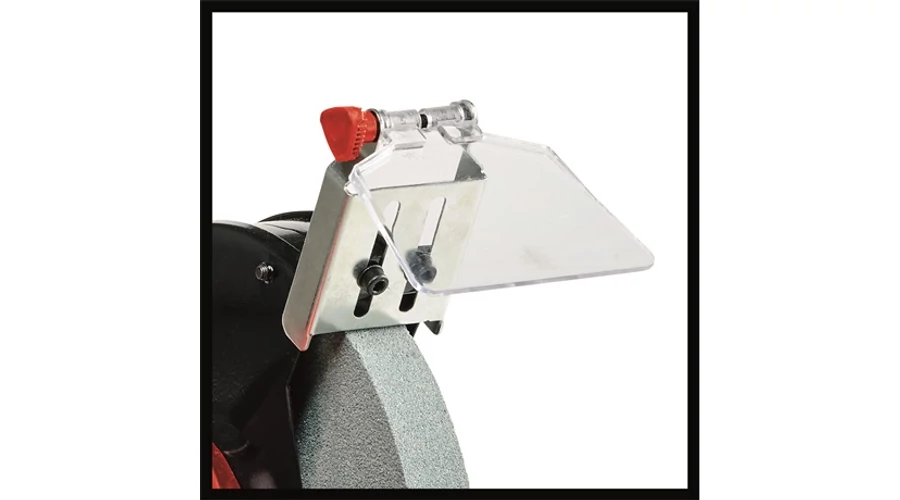 Az Einhell TC-BG 200 L egy praktikus és rendkívül sokoldalú kétkorongos köszörűgép, amely nem hiányozhat egyetlen ezermester műhelyéből sem! A készülék segítségével ollókat, késeket és pengéket, vágólapokat, fúrószárakat és marókat, sőt, akár még vésőket is megélezhet! A kétkorongos köszörűgépet használhatja még rozsda eltávolítására és sorjázásra, valamint fából, műanyagból és fémből készült munkadarabok csiszolására és polírozására. A készülék speciálisan kisebb javításokhoz és vágóélek utánélezéshez, sorjázásához készült, használhatja azonban komolyabb javítási- és korrekciós munkákhoz, vagy köszörüléshez is. A dönthető LED-világítás segítségével könnyedén megvilágíthatja a munkaterületet. A strapabíró és kompakt fémkonstrukció hosszú élettartamot biztosít. A nagy méretű és állítható munkalemez lehetővé teszi, hogy a legkülönbözőbb feladatokat is könnyedén elvégezhesse, a holtjáték nélküli golyóscsapágyazott tengely pedig mindig pontos végeredményt szavatol. A biztonságról a szerszám nélkül beállítható szikrafogó üvegek és az oldalt zárt védőburkolatok gondoskodnak. A csökkentett rezgésszintet és a maximális stabilitást négy darab gumiból készült láb biztosítja. A gyári csomagolás 1-1 darab durva- és finom korongot (K36/K60) tartalmaz.