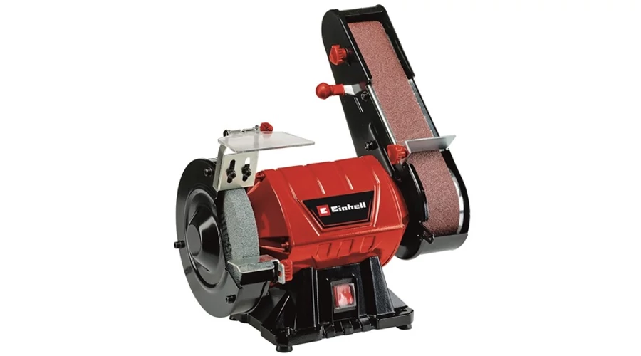 Az Einhell TC-US 350 asztali szalagcsiszoló egy 350 watt teljesítményű készülék, amelyet csiszolókoronggal és csiszolószalaggal egyaránt használhat. A multifunkciós készülék nagy lehordási teljesítményt biztosít, így ideális megoldás akár komolyabb faipari munkák elvégzéséhez is. A különböző csiszolási beállításoknak és szemcseméreteknek köszönhetően az asztali szalagcsiszoló számos munka elvégzésére használható. A biztonságról a szerszám nélkül beállítható szikrafogó üvegek, és az oldalt zárt védőburkolatok gondoskodnak. A stabil és csavarodásmentes konstrukció és a nagy méretű, állítható munkalemezek lehetővé teszik, hogy a legkülönfélébb feladatokat is elvégezhesse a készülékkel, ami így tökéletes megoldást jelent még a nagy és széles fadarabok megmunkálásához is. A csökkentett rezgésszintet és a maximális stabilitást négy darab gumiból készült láb biztosítja. A készülékhez gyárilag mellékelünk egy-egy csiszolókorongot és csiszolószalagot.