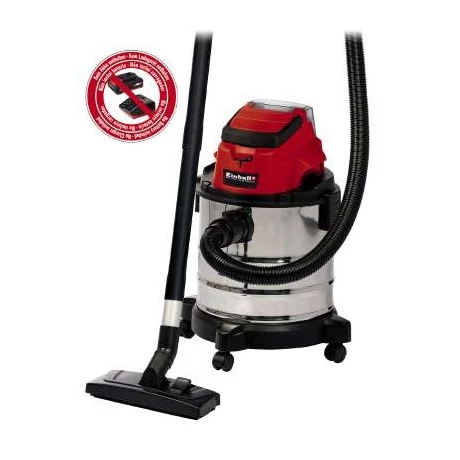 Az Einhell TC-VC 18/20 Li – Solo száraz-nedves porszívó nélkülözhetetlen segítőtárs a takarításban. Mindegy, hogy a műhelyben vagy a pincében szeretne rendet tenni, a végeredmény mindig tökéletes lesz. A készülékkel alaposan feltakaríthatja a teraszokat, erkélyeket vagy a lakást, és tisztává varázsolhatja autója üléshuzatát is. Ha szeretné otthonát valóban ragyogóan tisztává varázsolni - beleértve a szőnyegeket és a rögzített textíliákat, valamint a nyitott pórusú csempéket vagy járólapokat- akkor a felületi tisztítás bizony sokszor nem elegendő. A száraz-nedves porszívó tökéletes kiegészítője az otthoni tisztítógépeknek: segítségével alaposan megtisztíthat minden felületet még akkor is, ha mély és beszáradt szennyeződésekkel kell megküzdenie. Az akkumulátoros száraz-nedves porszívó a Power X-Change termékcsalád erős, megbízható tagja. A Power X-Change lényege, hogy a kiváló minőségű lítium-ion technológiával készült sorozat valamennyi akkumulátorát és töltőkészülékét az Einhell összes Power X-Change készülékéhez használhatja. A porszívót akkumulátor és töltőkészülék nélkül szállítjuk; ezeket külön vásárolhatja meg. A tartós 20 literes, rozsdamentes és erős nemesacél tartály kiválóan alkalmas a felszívott szennyeződések és folyadékok tárolására. A gégecsövet a készüléken található fúvócső csatlakozóhoz rögzítve még a nehezen elérhető helyekről (pl. sarkokból, a fürdőben vagy konyhában található repedésekből) is kifúvathatja a port és a szennyeződéseket. Mivel a padlószőnyegek és a sima, csúszós felületek tisztításához is maximális szívóteljesítményre lesz szükség, ezért a készülékhez mellékelünk egy nagyméretű kombinált szívófejet, amelyet szőnyegekhez és padlóhoz egyaránt használhat. A terméket fugatisztító szívófejjel szállítjuk, amellyel alaposan megtisztíthatja a fürdőben, a konyhában, a pincében és a teraszokon lévő fugákat, illetve a lakás intenzíven igénybe vett részeit, mint például a bejárati ajtó körüli területeket. Autója üléshuzatát és a kárpitozott bútorokat a mellékelt kárpittisztító fej segítségével varázsolhatja ragyogóan tisztává. A 36 mm átmérőjű gégecső és az intenzív légáram lehetővé teszi, hogy a készülékkel nagyobb mennyiségű szennyeződést is felporszívózhasson. A készüléket műanyag gégecsővel és háromrészes hosszabbító csővel, valamint porzsákkal szállítjuk. A praktikus tárolóban elhelyezheti a készülékhez mellékelt tartozékokat, így azok mindig kéznél lesznek. Az eredmény: egyszerű tartozékcsere és rendezett környezet. A négy darab görgőnek köszönhetően az Einhell száraz-nedves porszívója egyszerűen és kényelmesen irányítható, a készülékházon található fogantyúnál fogva pedig könnyedén felemelheti és viheti a készüléket.