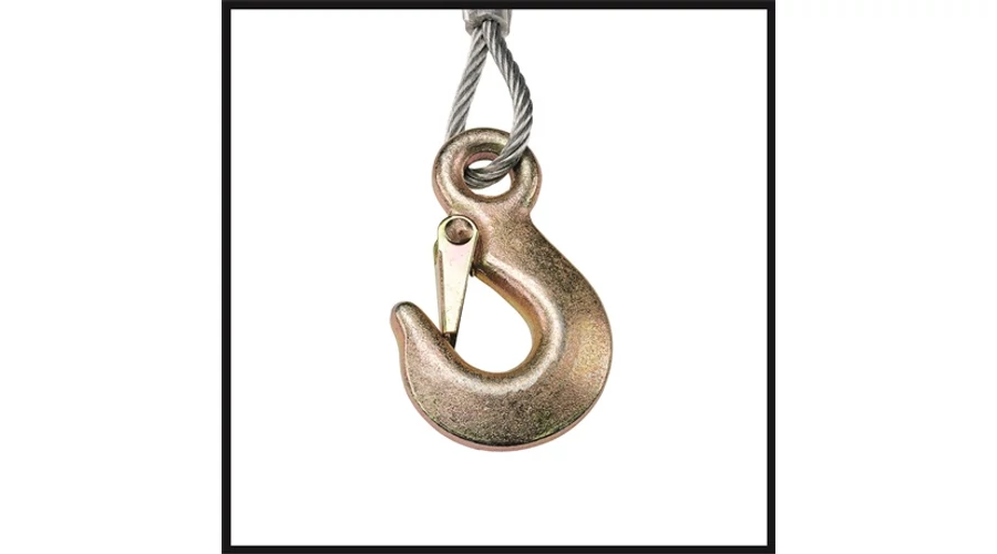 - A biztonsági karabiner megakadályozza, hogy a rögzített teher lecsúszhasson a horogról