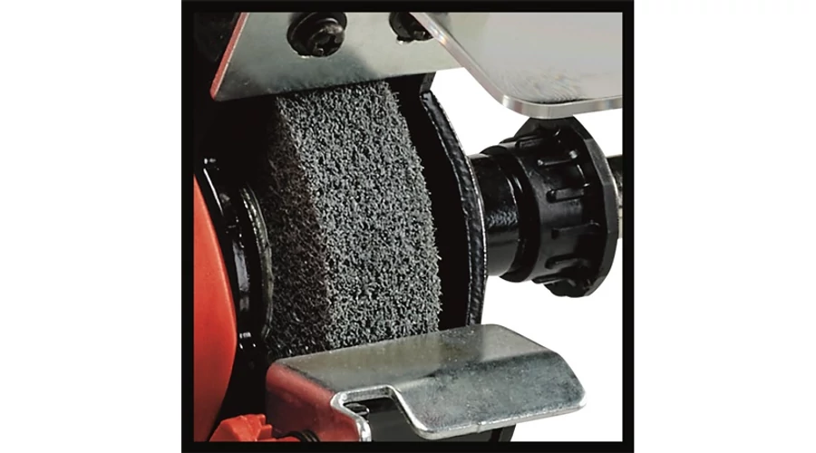 Az Einhell TC-XG 75 egy rendkívül sokoldalú kétkorongos köszörűgép, amely fúrókhoz, marókhoz, vágókorongokhoz és vésőkhöz, ollókhoz, sőt, akár késekhez és pengékhez is használható. A flexibilis tengely precíz finommegmunkálást tesz lehetővé, a fordulatszám-szabályozó elektronika segítségével pedig könnyedén a munkadarab tulajdonságaihoz igazíthatja a fordulatszámot. Az Einhell gazdag tartozékkészletét használva a kétkorongos köszörű vágási-, tisztítási-, polírozási- és csiszolási feladatokhoz használható – egyszerűen és biztonságosan. A csökkentett rezgésszintről és a maximális stabilitásról négy darab gumiból készült láb gondoskodik. Az állítható munkalemez rendkívül könnyű használatot biztosít. A szikrafogó üveg beállításához nincs szükség külön szerszámra. A strapabíró és kompakt fémkonstrukció hosszú élettartamot szavatol a készüléknek. A köszörűt holtjáték nélküli, precíziós golyóscsapágyazott tengellyel szerelték fel. Az oldalt zárt védőburkolat maximális biztonságot nyújt használat közben.