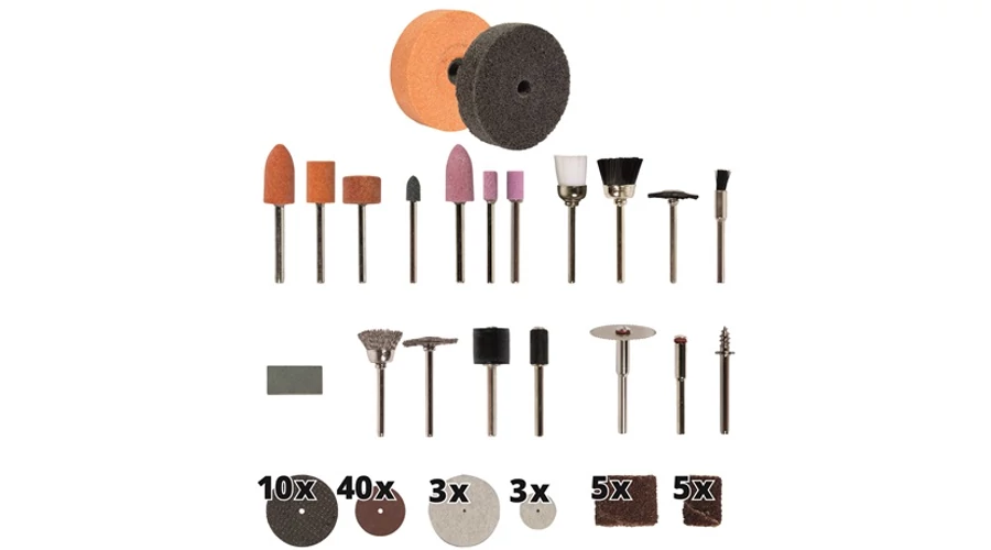 - Gazdag tartozékkészlet polírozási és csiszolási munkákhoz