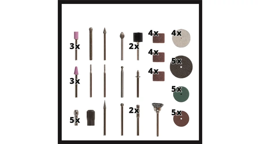 Az Einhell TE-MT 7,2 Li akkumulátoros csiszoló/gravírozóját gravírozási, marási, csiszolási munkákhoz és kefével történő tisztításhoz tervezték. Használja otthon, a műhelyben vagy a garázsban! A készülék gyári csomagolása tartalmazza a hosszú élettartamú akkumulátort (7,2 V | 1500 mAh). A LED-kijelzővel ellátott fordulatszám-szabályozó elektronika lehetővé teszi, hogy mindig az elvégzendő feladat tulajdonságaihoz igazítsa a készülék fordulatszámát (5500-26 000 min^-1). A rögzítőgomb egyszerű és gyors szerszámcserét tesz lehetővé. A munkadarab optimális megvilágításáról a LED-körfény gondoskodik. A biztos tartást és a precíz munkavégzést az ergonomikus Softgrip borítású felületek garantálják. A csiszoló és gravírozó készülék mindig használatra kész a töltőállomásnak köszönhetően. Az univerzális felhasználás biztosítása érdekében a csiszoló/gravírozó készülék gyári csomagolása egy praktikus tárolódobozba helyezett, 57 részes tartozékkészletet is tartalmaz.