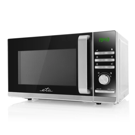 Az ETA Galateo mikrohullámú sütő pár perc alatt felmelegíti kedvenc ételeit. Függetlenül attól, hogy félkész termékeket melegít fel, fagyasztóban tárolt élelmiszert olvaszt ki, vagy kísérletezik egy automatikus főzési programmal, imádni fogja az ételek könnyű és gyors elkészítését ebben a mikrohullámú sütőben. Ezenkívül a lekerekített vonalakkal ellátott modern dizájn az ETA Galateo mikrohullámú sütőt lenyűgöző dizájnelemmé teszi, amely minden konyhában megállja a helyét. Elegáns, és nagyon praktikus tulajdonsága a jellegzetes fogantyú az ajtó egyszerű kinyitásához.