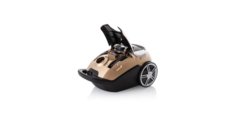A porszívó kezelése nagyon kényelmes és egyszerű, mivel a 360 fokos forgókerekeknek köszönhetően minden irányba lehetővé teszi a mozgást. A puhított kerekek továbbá gyengédek a sima padlóhoz, így nem roncsolja a görgőket és nem karcolja meg a padló felületét.