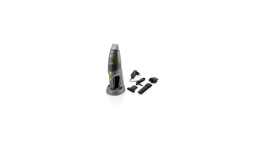 Morzsaporszívó - folyadékhoz, padlóhoz, fapadlóhoz és autóba, 20 perc működési idő, 5 óra töltési idő, Li-ion akkumulátor, hepa szűrő, 78 dB(A) zajszint, fali tartó, kefés szívófej, töltőállomás, lehúzó fej és résszívó, 16 cm magas, 42 cm széles, 16 cm mély, színe: szürke
