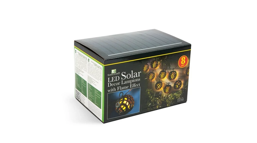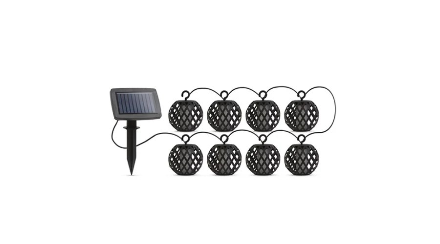 Dekorálja kertjét felakasztható szolár fényfüzér lámpával. A láng lobogásának illúzióját keltő fény meghittséget áraszt, ezzel kölcsönözve egyedi megjelenést kertjének. A gömbök akár teraszra, fára, kerítéselemre is felakaszthatóak, míg a szolár egység leszúrótüskével is rendelkezik. A nappal feltöltött akkumulátoroknak és a szolár panelnek köszönhetően a kert éjszaka varázslatos színekkel telik meg, ugyanakkor nem növeli áramszámláját. A lámpa szürkületkor automatikusan bekapcsol, napfelkeltekor pedig ki.