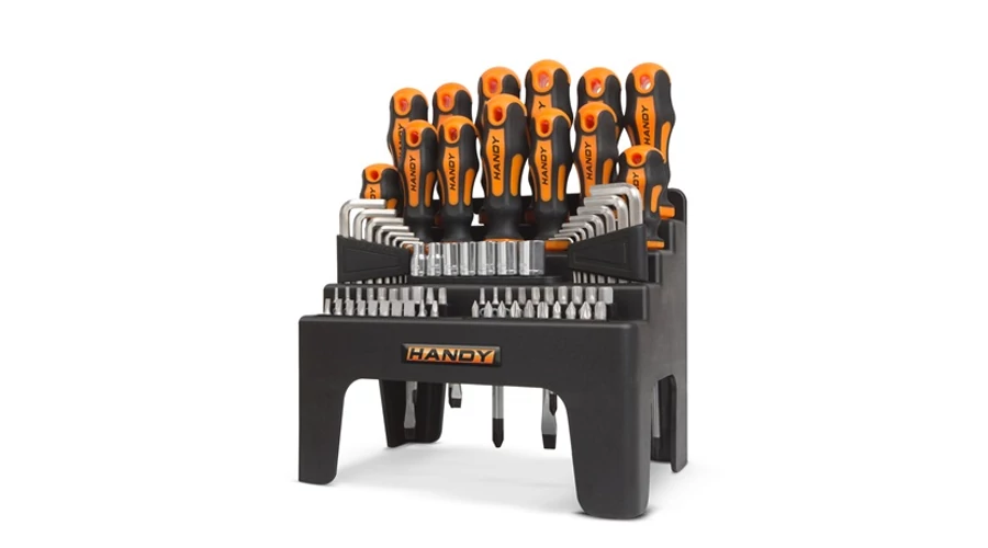 Szinte minden szerelési folyamatot kielégítő, nagyméretű csavarhúzó készlet. A szett tartalmaz 12 db csavarhúzót, 40 féle bitfejet, 7 krovafejet, 16 db imbuszkulcsot, valamint a szerszámok áttekinthető tárolására szolgáló tartókonzolt. A konzol kompakt méretének köszönhetően garázsának, műhelyének asztalán nem foglal sok helyet, igény esetén falra is rögzíthető a két akasztólyuk segítségével. A csavarhúzók mindegyike csúszásmentes, két komponensű, a kényelmes és biztonságos használatot elősegítő ergonomikus nyéllel rendelkezik. Ideális felhasználása lehet háztartási barkácsoláskor, kerékpárok, autók szerelésekor és egyéb szerelési folyamatok során.