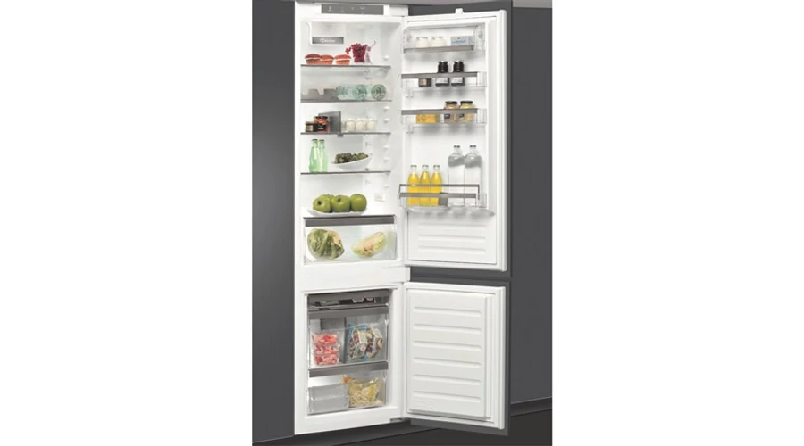 228 l hűtőtér/80 l fagyasztótér, F energiaosztály, 6. Érzék Fresh Control, Stop Frost technológia, automatikus hűtőtérlevolasztás, digitális LED kijelző, ventilátor antibakteriális szűrővel, elektronikus hőmérséklet beállítás, LED világítás, Prémium felszereltség, gyorshűtés, 225 kWh/év, 35 dBA, beépítési méretek: 194x56x55,5 cm