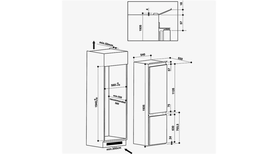 Beépítési méretek (Mag.xSzél.xMély.) (mm) 1940x560x560