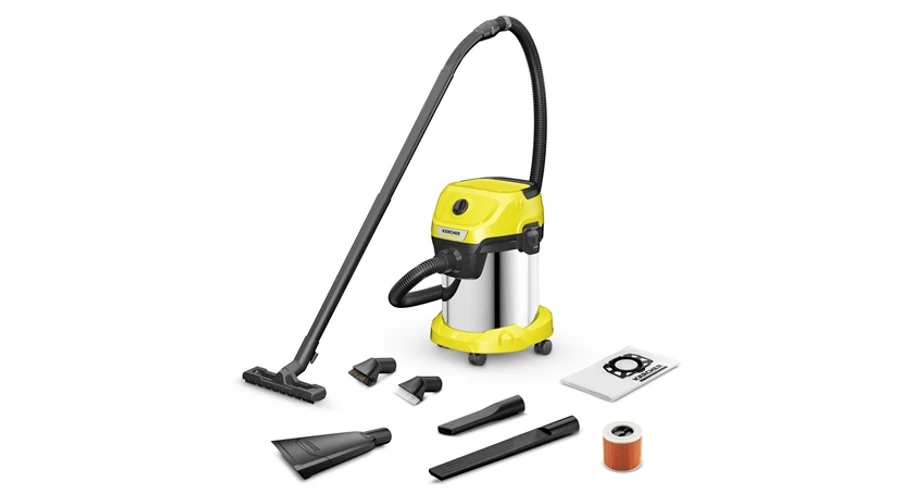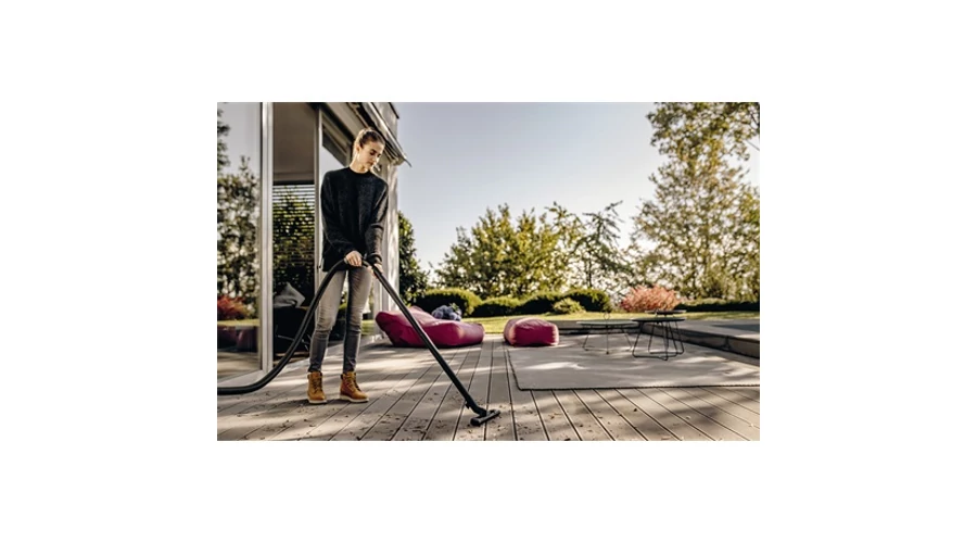A WD 3 S V-17/6/20 Car nedves-száraz porszívó szupererős, energiatakarékos és kompakt - mindössze 1000 W energiafogyasztással. A gép autótisztító fejjel, extra hosszú résfúvókával, puha és kemény sörtékkel ellátott szívókefével nyújt lenyűgöző eredményeket. Legyen szó akár kényes felületekről, mint például a műszerfal, vagy erősen szennyezett területekről, mint például a lábtér, vagy nagy területekről, mint például a csomagtartó, vagy a szűk helyekről az ülések között: A speciális keféknek és fúvókáknak köszönhetően a jármű belsejében minden terület gond nélkül és alaposan megtisztítható. A levehető fogantyú lehetővé teszi, hogy a kefék és a fúvókák közvetlenül a szívótömlőhöz csatlakoztathatók legyenek, így szűk helyeken is könnyedén lehet velük dolgozni. A készülék robusztus és ütésálló 17 literes rozsdamentes acéltartállyal, 6 méteres kábellel, levehető fogantyúval ellátott 2 méteres szívótömlővel, átkapcsolható padlófejjel, résfúvókával, patronos szűrővel és flíz porzsákkal van felszerelve. Az egyrészes patronszűrő lehetővé teszi a száraz és nedves szennyeződések porszívózását is szűrőcsere nélkül. További jellemzői: tárolási lehetőség a gépfejnél, praktikus fúvófunkció, "Pull & Push" zárrendszer a tartály egyszerű nyitásához és zárásához, valamint ergonomikusan kialakított hordozófogantyú.