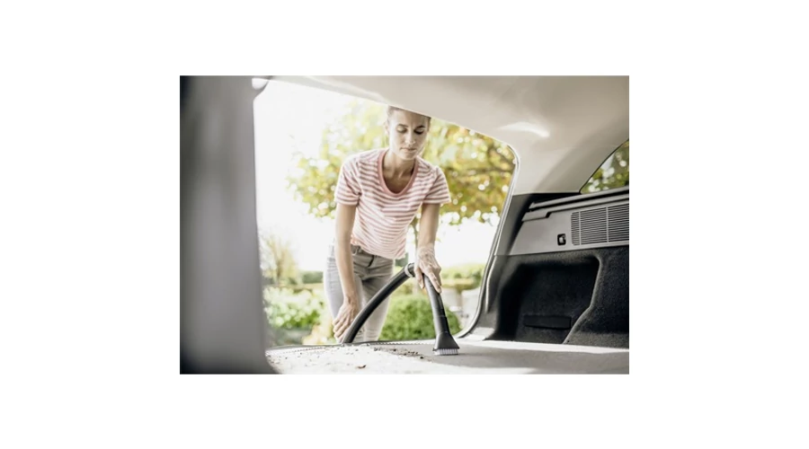 A WD 3 V-17/6/20 Car nedves-száraz porszívó szupererős, energiatakarékos és kompakt - mindössze 1000 W energiafogyasztással. A gép autótisztító fejjel, extra hosszú résfúvókával és puha és kemény sörtékkel ellátott szívókefével nyújt lenyűgöző eredményeket. Legyen szó akár kényes felületekről, mint például a műszerfal, vagy erősen szennyezett területekről, mint például a lábtér, vagy nagy területekről, mint például a csomagtartó, vagy a szűk helyekről az ülések között: A speciális keféknek és tisztítófejeknek köszönhetően a jármű belsejében minden terület és felület gond nélkül és alaposan megtisztítható. A levehető fogantyú lehetővé teszi, hogy a kefék és a fúvókák közvetlenül a szívótömlőhöz csatlakoztathatók legyenek, így szűk helyeken is könnyedén lehet velük dolgozni. A készülék robusztus és ütésálló 17 literes műanyag tartállyal, 6 méteres kábellel, levehető fogantyúval ellátott 2 méteres szívótömlővel, átkapcsolható padlófejjel, résfúvókával, patronszűrővel és flíz porzsákkal van felszerelve. Az egyrészes patronos szűrő lehetővé teszi a száraz és nedves szennyeződések porszívózását is szűrőcsere nélkül. További jellemzői: tárolási lehetőség a gépfejnél, praktikus fúvófunkció, "Pull & Push" zárrendszer a tartály egyszerű nyitásához és zárásához, valamint ergonomikusan kialakított hordozófogantyú.