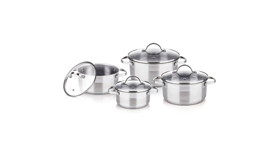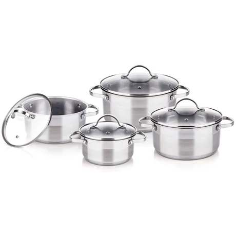 - Designer edénykészlet első osztályú rozsdamentes acélból, tömör, szendvics szerkezetű talppal, különleges, elegáns, nemesacélból fogantyúkkal a biztonságos, funkcionális és kényelmes kezeléshez