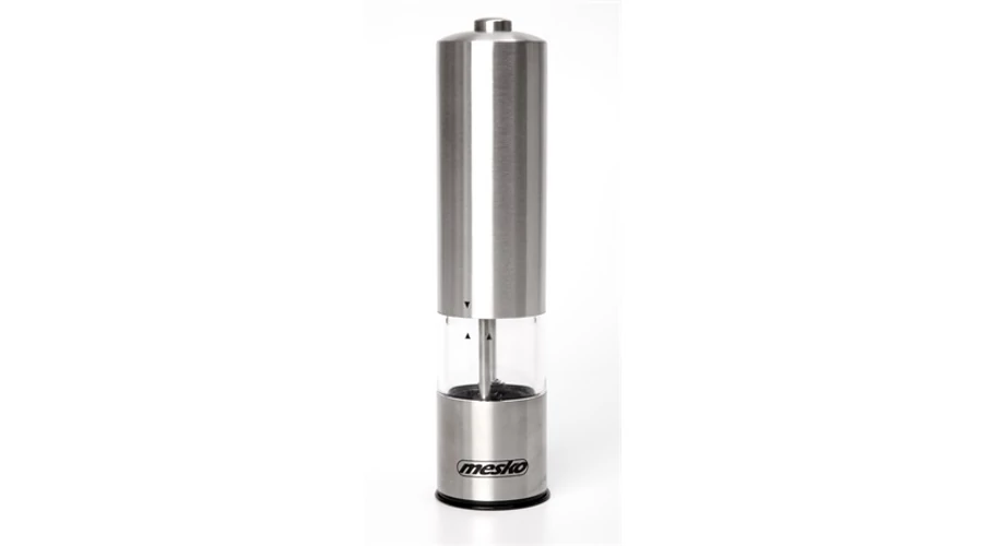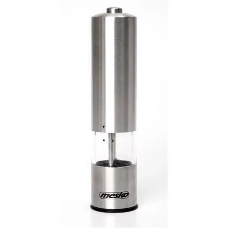 Rozsdamentes acél géptest, kerámia őrlőkés, szabályozható őrlés finomság, átlátszó fűszerkamra, működés 4db AAA elemmel