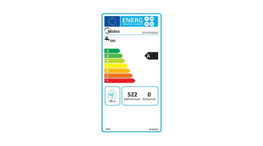 Az A energiahatékonysági osztályba tartozó Midea D10-20VD1(U) nem csupán a komfortérzetét növeli, de segít a környezet védelmében is, hiszen kevesebb energiát fogyaszt, csökkentve ezzel a rezsi költségeit.