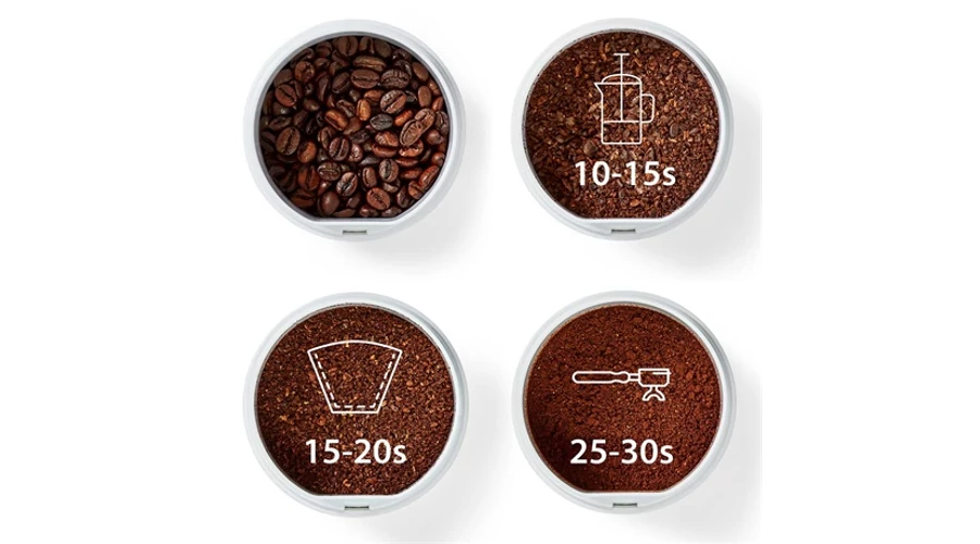 - A kívánt állagú őrlemény eléréséhez nyomja meg és tartsa lenyomva a daráló gombot