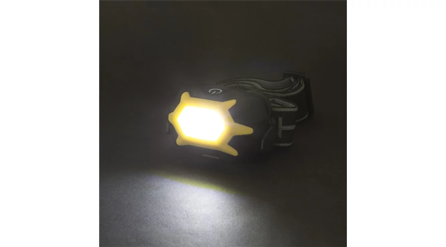 COB LED-es, érintőkapcsolós fejlámpa 3 különböző világítási funkcióval.