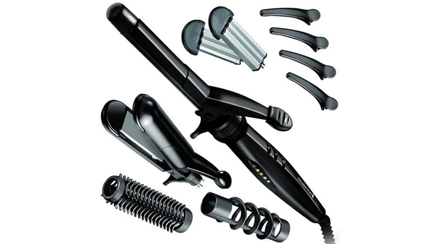- Tartozékok: cserélhető kreppelő & simító betétek, 19mm átmérőjű hajsütővas, kefe, spirális kefe, 4 hajcsat