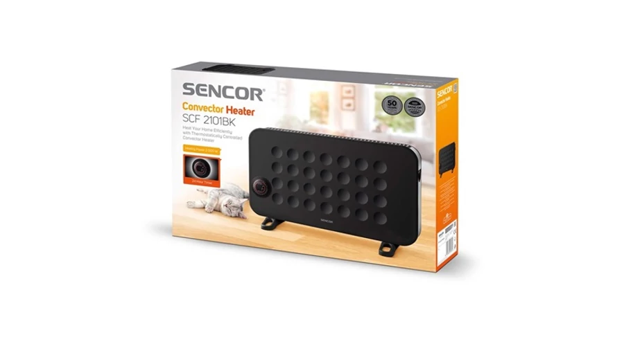 A Sencor SCF 2101BK egy elektromos forrólevegős konvektor, amelynek maximális teljesítménye akár 2000 W. Három választható fűtési teljesítmény szinttel, folyamatos hőmérsékletszabályozó termosztáttal és bekapcsolást jelző fénnyel lett felszerelve. A beépített ventillátor a gyorsabb hőterjedést és a túlhevülés elleni védelmet biztosítja.