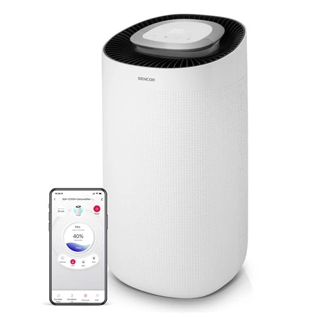 A Sencor SDH 1210WH készülék komplex módon gondoskodik a levegő minőségéről. Eltávolítja a felesleges páratartalmat és tisztítja a levegőt. Ráadásul mindig ellenőrzése alatt tarthatja, mivel ez egy újabb tagja a Sencor okoseszközök családjának, amelyet a Sencor HOME alkalmazás segítségével kényelmesen vezérelhet az okostelefonja képernyőjéről.
