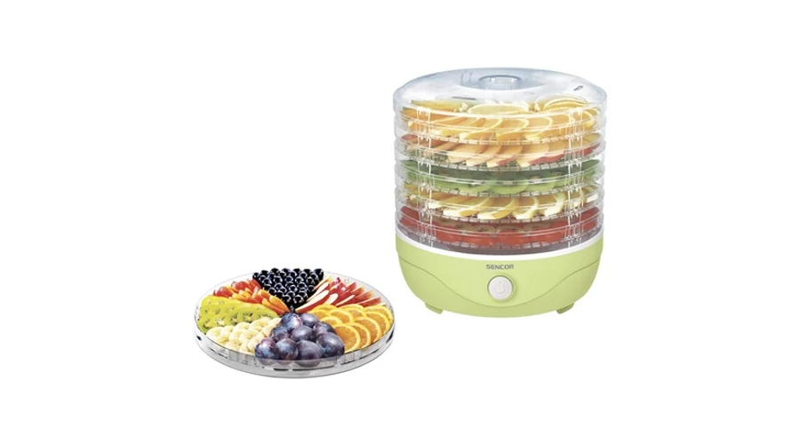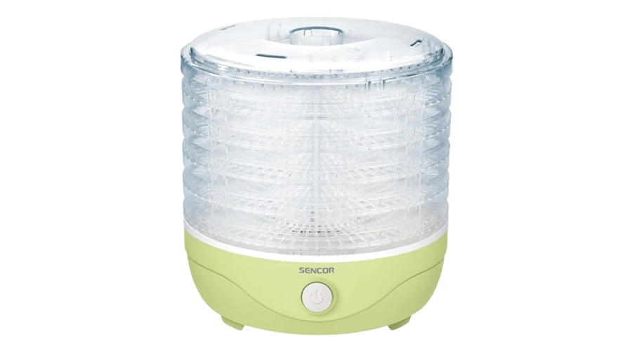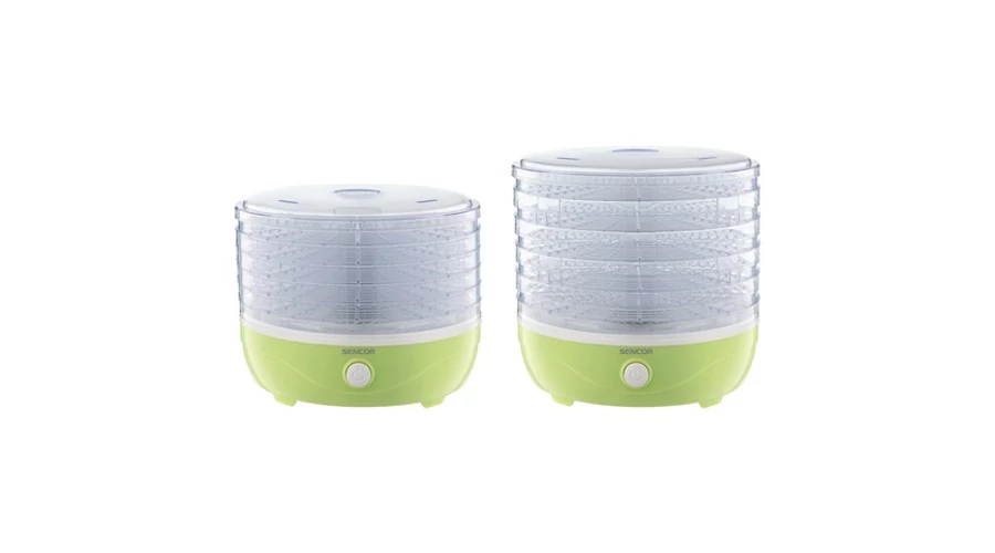A Sencor SFD 757GG aszaló 5 db szárító tálcával rendelkezik. A tálcák 230 mm átmérővel rendelkeznek és a szárítási szintek manuálisan állíthatók. Segítségével különböző aszalt gyümölcsöket, gyógynövényeket, gombákat, húsokat vagy akár halakat száríthatunk. A beépített ventilátor gondoskodik az egyenletes szárításról mindegyik szinten, a szárító sziták rácsának kialakítása pedig megakadályozza a penész keletkezését és optimalizálja a légáramlást. Az átlátszó borítás lehetővé teszi a szárítási folyamat teljeskörű ellenőrzését.