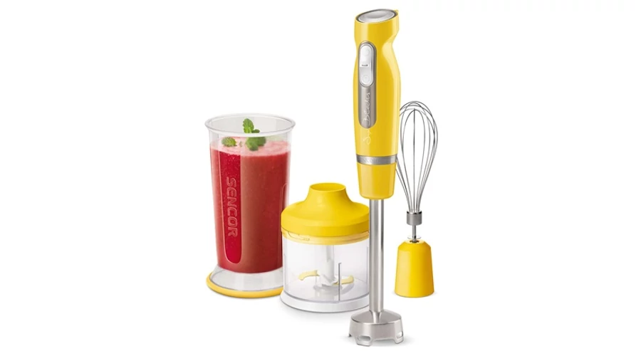 A Sencor SHB 4466YL-EUE3 botmixer krémlevesek, szószok, bébiételek gyors elkészítésében nyújthat Önnek segítséget. Az extra csendes 1000 W teljesítményű motor változtatható sebesség funkcióval lett ellátva. A 6 rozsdamentes Titánból készült aprító pengék pedig forró ételek készítése mellett jégzúzáshoz is alkalmasak. Az ergonomikusan kialakított markolat biztos és kényelmes fogást biztosít. Az 700 ml-es keverőpohár segítségével nagy mennyiségű alapanyag is feldolgozható vagy akár mérőedényként is használható, továbbá megtalálható egy 500 ml kapacitású edény is, mely aprításra kiválóan alkalmazható.