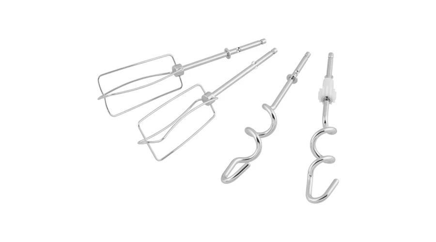 1 pár rozsdamentes acélból készült habverő, mely ideális a tojásokhoz krémekhez és 1 pár dagasztókar. Karbantartásuk egyszerű, mosogatógépben moshatók.