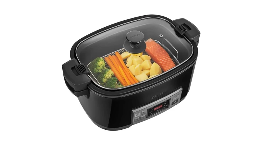A Sencor SPR5508BK egy elektromos lassan főző készülék. A lassú főzés egy modern főzési technológia, amely megőrzi az alapanyagok ízét és illatát, és akár bármilyen zsiradék hozzáadása nélkül készítheti el kedvenc ételeit. Ezzel a multifunkciós készülékkel süthet akár olajban, párolhat vagy gőzben készítheti el az ételeket. A digitális LED kijelzőnek és a melegen tartó funkciónak köszönhetően a főzés egyszerűbb és kényelmesebb lesz, mint valaha.