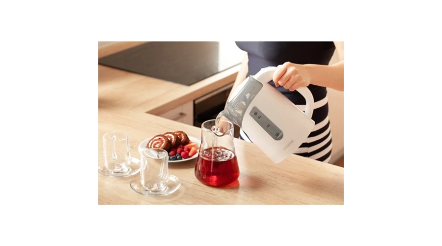 A Sencor SWK 1700WH egy nagy teljesítményű elektromos vízforraló 2200 watt maximális teljesítménnyel, mellyel időt és energiát takaríthat meg. Akár 1,7 liter vizet is képes egyszerre felforralni, így 3-5 fős háztartásokba megfelelő választás. A készülék használatát ergonomikusan kialakított fogantyú teszi kényelmesebbé, valamint a markolatba épített fedélnyitó gomb. A beépített szűrő könnyen és egyszerűen eltávolítható, tisztítható. A vízforraló többszörös biztonsági rendszerrel lett felszerelve. A 360°-ban elforduló talpnak köszönhetően a tápkábel sem zavarja a munkában.