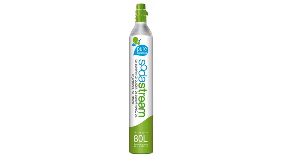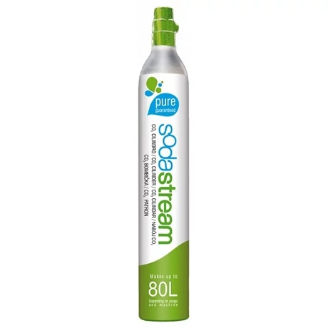 CO2 patron, amelynek befogadóképessége legfeljebb 60-80 liter szénsavas víz elállítására elegendő.
