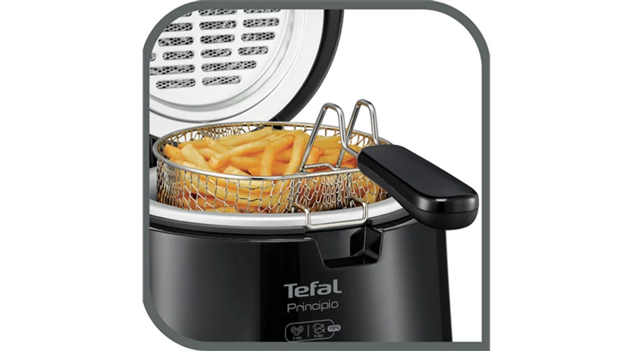 A Principio nagyon könnyen használható fritőz. Lecsöpögtetheti a fölösleges olajat az ételről a kosár „lecsöpögtető pozíciójában”, az ételek készítése során pedig használhatja a fedelet a kifröccsenő olaj ellen.
