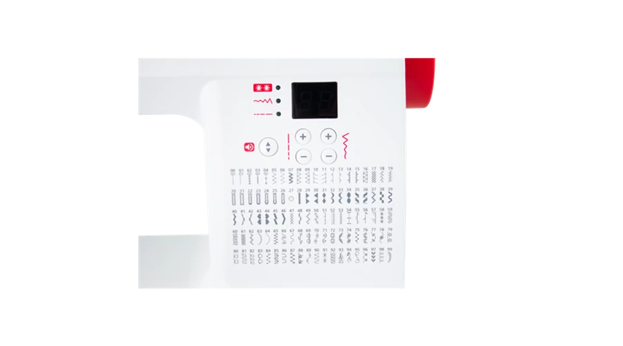 A befűző segéd különösen hasznos, mivel nem kell hosszasan bajlódni a szál befűzésével. A nagy varrófelület, a kivehető tartozék fiókokkal ideális nagy darabok varrására, de akár keskeny ingujjak varrására is. A tartozék fiókban olyan kiegészítőket találunk, mint varrótalpak, vagy plusz orsók.