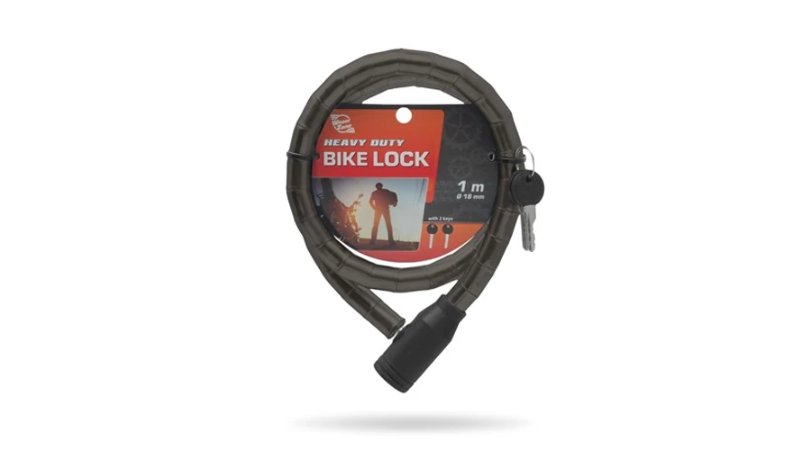 Kerékpár görgős lakat (kábelzár). A bevont acélkábel ellenállóbb a vágó támadásokkal szemben. Minőségi zárszerkezet, 2 db kulccsal.