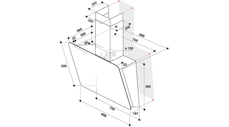 Falra szerelhető, ferdesíkú páraelszívó (90 cm)
